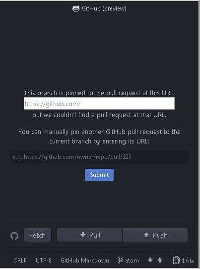 Create new branches, stage and commit, push and pull, resolve merge conflicts, view pull requests and more—all from within your editor. Work with git and github directly from atom with the github package... If everything worked as planned, you can now navigate over to the github page of your fork to see that your branch, with changes, has been pushed up.